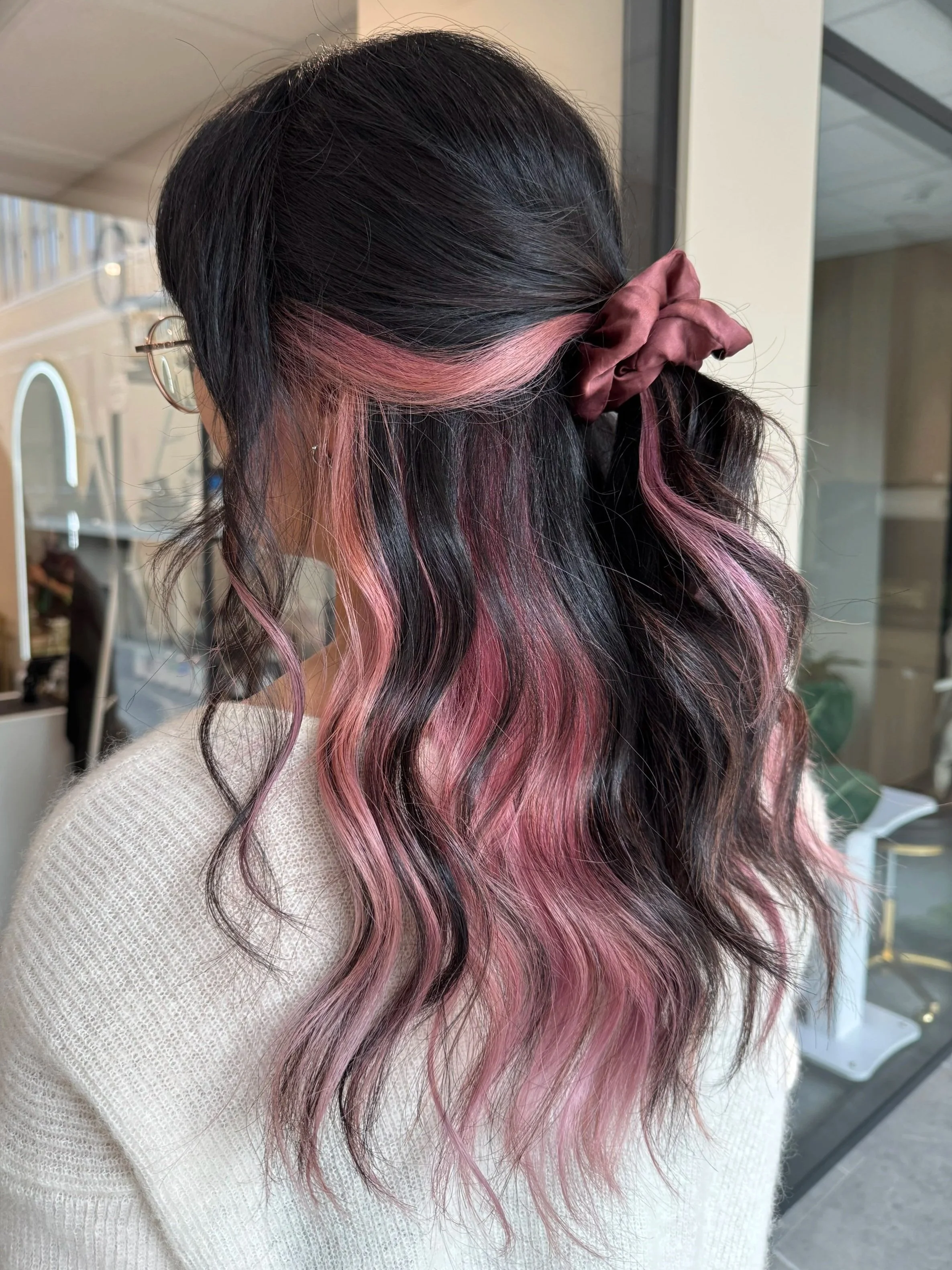Creative colour placements such as peekaboo or colour block. (Includes lightening, toning, K18 treatment, wash, and style.)